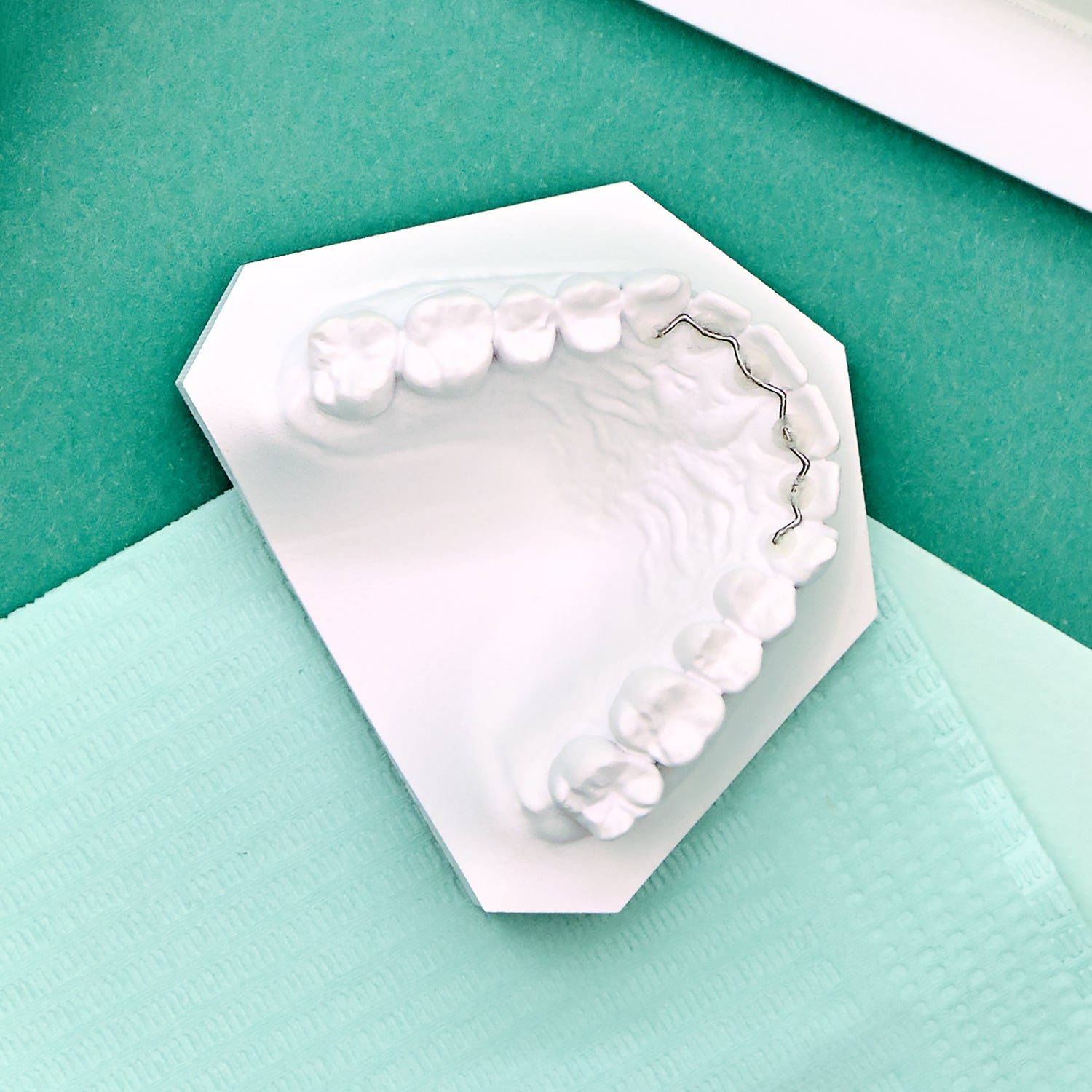 Dann entscheide Dich für unseren maßgefertigten Dauerretainer. Der dünne Draht ist nicht sichtbar und hält Deine Zähne ohne Dein Zutun dauerhaft gerade.